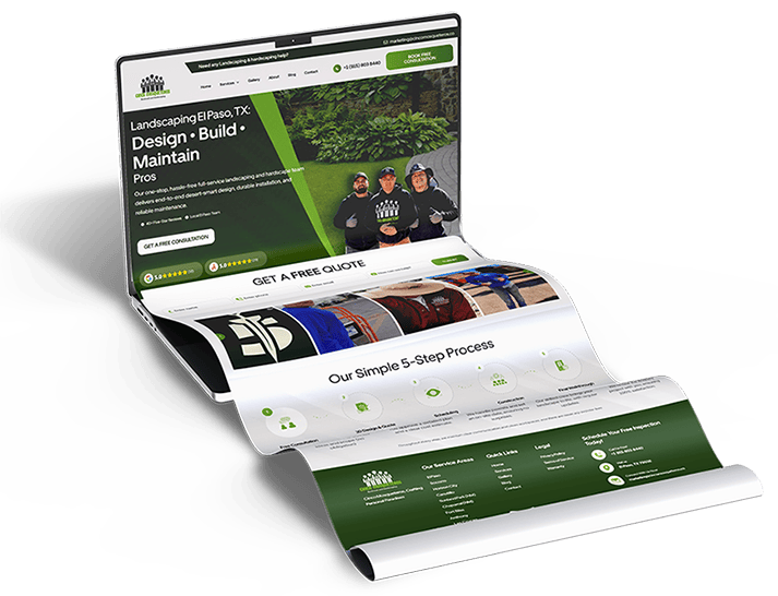 A beautiful site is a real signal - it tells a homeowner you're the kind of pro who can run their backyard project. But pretty alone doesn't get you found, doesn't earn the trust, doesn't book the call. We build all four into every site so the design works and the phone rings.